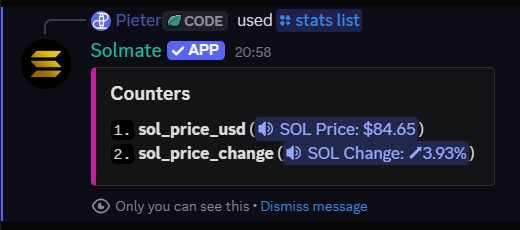 Display live Solana data in voice channels — prices, floors, volumes, and more.