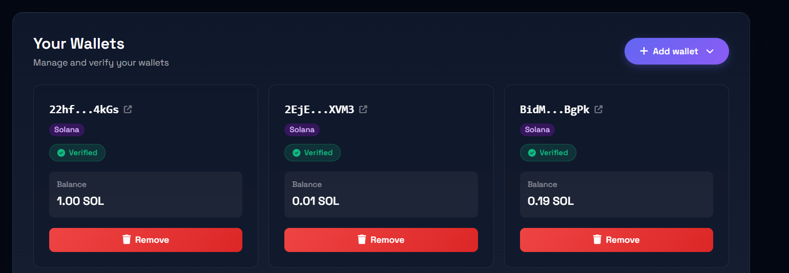 Manage your personal account and connected wallets.